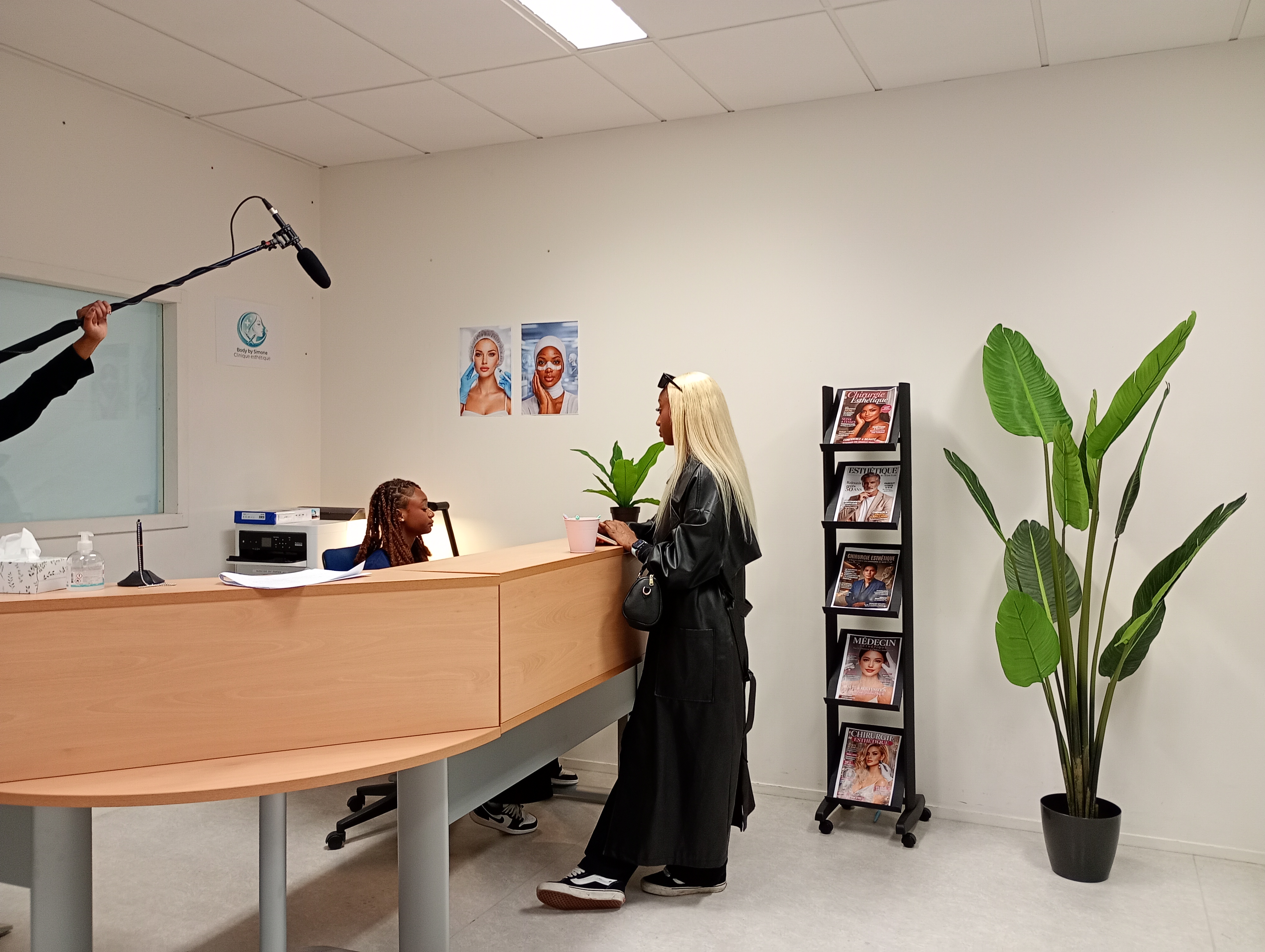Aujourd’hui, les élèves de Terminale Métiers de l’Accueil ont tourné les scènes de leur film, une étape clé du projet « Écrire le travail, écrire les métiers ».
