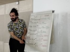 Le mercredi après des échauffements dans la bonne humeur, dont un exercice avec consignes éliminatoires -le jeu du millefeuille- les élèves ont pris connaissance d’informations véridiques et surprenantes sur le Soleil, la Terre, Pluton et Neptune. A partir de ces informations, ils ont eu pour mission de créer une petite improvisation par petits groupes. Ils ont d’abord réfléchi à un scénario. L’idée était de réaliser une annonce publicitaire faite par une agence de voyages, spécialisée dans les destinations extra-terrestres. Les élèves ont parfaitement joué le jeu. Pour finir, grâce à des schémas, le comédien a tenté une mise à l’échelle des planètes suivi d’un déplacement à l’extérieur de la salle pour matérialiser à quelle distance se trouvait le Soleil.