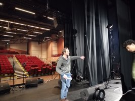 Nous avons été accueillis par Camille (responsable billetterie et relations avec les scolaires), Antoine (régisseur lumières) et Thomas (régisseur son). Un régisseur est un technicien qui peut en superviser d’autres.
