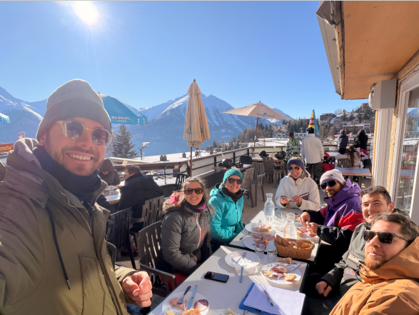 Midi : par ce beau temps, nous avons déjeuné à la terrasse du restaurant avant de reprendre les skis.