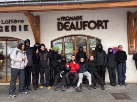 Aujourd’hui, nous avons commencé notre journée par la visite de la Fromagerie à Saint Jean d’Arves. Un film ainsi qu’une visite de la cave d’affinage a été proposés aux élèves afin de connaître les étapes de fabrication du beaufort.